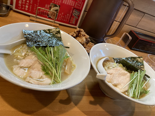 スープもほぼ飲み干しました。(しお鶏白湯をいただきました。)鶏のチャーシューもしっとりとして初めての食感!ランチタイムの麺大盛り無料もかなり嬉しいですね。 からあげもいただきました。ボリューム満点!味付けは大きな特徴はないけどとても美味しくて、揚げ具合もとても良かった。とにかく大きいです。覚悟が必要です。