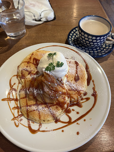 Read moreOff the beaten path, but well worth it for these pancakes!! Barely even looks like a cafe from the outside minus a small “cafe latte” sign out front, but the inside is so adorable and welcoming. Few notes for my foreigners, first sliding door puts you in the foyer, take your outside shoes off and put on slippers, and inside the second sliding door is the cafe where you can sit anywhere you’d like. The menu switches from pasta for lunch (11:30-13:30) to pancakes for post-lunch dessert/snack (13:30-close). You’ll need to Google translate the menu but it’s got great descriptions for the various types of pancakes, and the staff are so friendly, I’d highly...