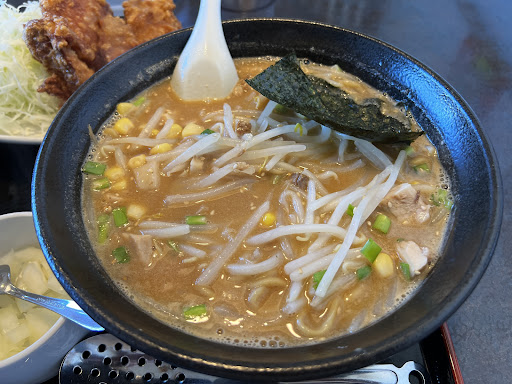 ラーメンは種類が豊富で、そこへ「唐揚げセット」が440円で追加できますが、これが罠です。注文したラーメン、そこへ唐揚げ2個と半ライスと漬物の小皿が加わるのですが、レビューした皆さんが声を揃えて言われるように唐揚げのサイズがハンパないです。他の店でもラーメンに追加で唐揚げとライスのセットは珍しくはないですが、唐揚げを食べるためにナイフとフォークが付いてくるのは前代未聞です。もちろん、それに頼らざるを得ない大きさです。半ライスも「これ半分じゃないから!」ってボリュームです。 画像のラーメンは「超激辛シビレ麻婆麺(1000円)」でメニュ表に堂々と書かれている裏メニューですが、麻辣好きの方にはぜひ食べていただきたいです。四角い容器には無料サービスで刻み...