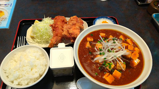 【R7.01.19再訪】 シビ辛系が食べたい気分だったので再び足を運びました。 前回と同じ「シビレ麻婆麺(970円)」の唐揚げセット(+510円)を注文。初めて来た一年半前より値上げされていますが仕方ありません。 相変わらず巨大な唐揚げが目を引きます。サービスの刻みタマネギは申告制になりました。 シビレ麻婆麺は、今回は標準の辛さにしました。一口味わった途端に花椒の痺れが口内を支配しシビ辛欲を満たしてくれる刺激です。唐辛子の辛味はそれほど強くなくハードルは意外と高くないと思います。 ご飯との相性もバッチリで、最後は麻婆丼を楽しむのがオススメです。 唐揚げは大きいだけでなく、噛めば肉汁が溢れ、ほどよい味付けでとても美味しいです。卓上の調味料にマヨネーズがあるのが嬉しいです。 今回もお腹いっぱいの大満足なランチになりました。