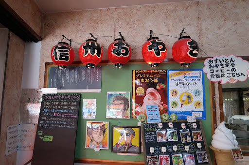 道の駅信州新町の中にあるおやき屋さん。焼きたてのおやきを食べることができます。りんごのおやきはスイーツ系でアップルパイのおやき版のような感じ。ピリ辛野沢菜、野菜ミックスは本場のおやきという感じで、とてもおいしかったです。 店内でも食べられるし、お持ち帰りも可能。 店内で食べるときのプラスチックのお皿のチープさがまたローカルなお店のイイ味を出していていい感じです。道の駅信州新町に寄ったら、おやきを食べてみてはいかがでしょうか。オススメです。 道の駅信州新町の目の前の道路が工事中なので、少し入りにくいかもしれません。今日は工事中の誘導員がいたのでスムーズ...