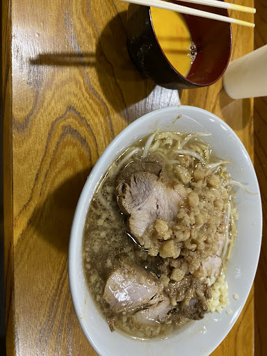 【良かったこと】 ・グループで待つときは、全員集まってから並んだ方がいいです(バレたら1番後ろから)。 ・定員さんが明るい!(初めての二郎系でしたが、指示に従ってるだけで、上記の玄人っぽいオーダーも簡単です。) ・両替とかも快く定員さんが対応してました(1万円を両替してる人いたので、千円札メインで持っていった方がいいかも)。 ・がっつり食べたいだけでなく、豚肉の風味も効いたなんとも言えない旨いスープでした! ・トッピングで肉増ししたのですが、この肉がめっちゃ旨い!!柔らか!!!