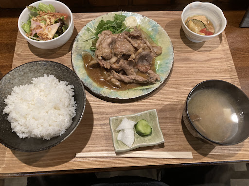 日替わりBの生姜焼き定食を注文。 それほど待たずに提供されました。 うほ~ 見て この!肉厚で量もたっぷり! 副菜もついて ごはんもお味噌汁も美味しい~ 白米食べ過ぎないようにと思っていたけど ごはん大盛に変更してしまいましたね~😊