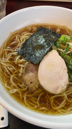 長野の美味しいラーメン行き尽くしたと思っていた数分前の自分を殴りたい。少し狭い住宅街の路地をうねうねと進むとこの店に出会う。こんなところにラーメン屋が。駐車場がいくつかあるので車で来れる。暖簾をくぐると店内は家庭的な雰囲気のあるお店でした。定食屋のような印象を受けましたがまさか美味しいラーメンが食べられるとは。煮干しと地鶏で出汁をとったラーメンがおすすめのよう。二人できたのでおすすめの中華そばと、鶏白湯を選択。おすすめの方。スープを顔に近づけた途端に広がる煮干しの香りがすごい。豊か。煮干し特有のハラワタの苦さのようなものは全く感じません。丁寧な仕事がうかがえます。私は鶏白湯を食べましたが、こちらも美味しい。長野には有名鶏系のラーメン屋がありますが、全然負けてない美味しさです。パツパツの細ストレート麺もとても良い。餃子の美味しさにも驚かされました。厚めの皮に餡と肉汁が閉じ込められている。一口で頂くと香味の効いた餃子汁が口の中でバチンと弾ける。 また食べた...