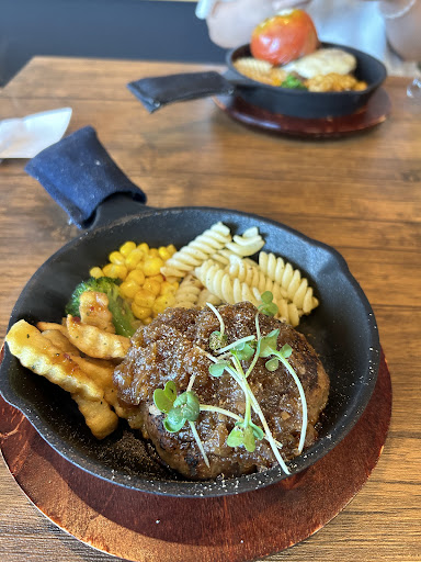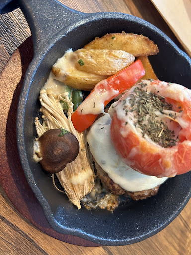 Read moreオープンしたてでランチに伺いました! QRコードを読み取ってオーダーするスタイルになっています。 ランチにはドリンクバーとビュッフェが付いていて、メイン料理を頼んだらビュッフェの野菜などを食べながら待ちました。 今回は、丸ごとトマトが乗ったハンバーグとハンバーガーを頼んでシェアしました! ハンバーガーは他とは違いバンズは硬め!私的には新食感バーガーって感じでしたが、柔らかい方が好みでした。 ビュッフェは、少なくなったら足されるモノもありましたが、無くなるとメニュー自体が変わって登場してくるモノもありました! メイン料理のご飯はビュッフェの所から自分で食べられる量を盛れるので良かったです! BBQも気になります!