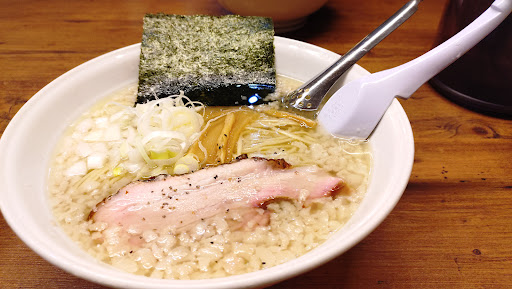 Read more背脂たっぷりなラーメンが食べたいなぁ近くでも食べられないかなぁと検索したところ、こちらのお店がヒットしました。 背脂らーめんの塩なんてのがあると。 背脂好きだし塩味好きだし、もうそれで決まりだなと。 あの場所ではしょっちゅう買い物してるし気になっていたお店なので遂に行こうか!と伺いました。 待ってる人が数人、食券を先に買って名前を書くのですね、背脂らーめんと豚らーめん(小)、ねぎチャーシュー丼を購入。 しばらくして味とにんにく入れるか、麺大盛りにするかを聞かれる。 大盛り無料と言ってくれれば、お願いしますと言ってしまいますね...