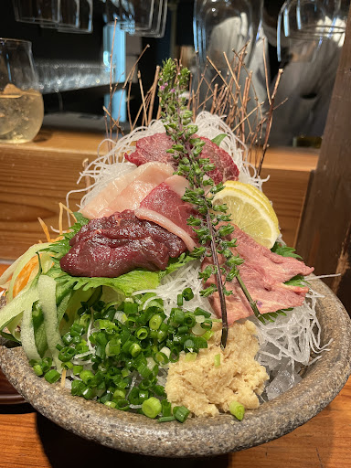 Read moreWe had a fun night here. We first got a seat at the bar, they asked us if horsemeat was okay, a little odd but I guess a lot of people are picky with their meats. We ordered Hotpot and then got a table because it was not possible to eat hotpot at the bar, this was a much better seat. The food was good, we had two types of horsemeat, different types of mushroom and vegetables. I loved the meat and mushrooms, the veggies were a little bit simple. We also had a sake tasting (3 glasses each) I would recommend. It was a little bit on the pricey side but overall...