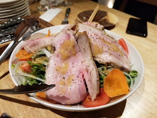 We had the cheese and meat selection, with local baked bread, a seasonal vegetable platter and salad that was offered, and then the friend pork hot pot, shared between the two of us. Some of the best pork I've had in a while. The party next to us ordered the seasonal buri fish, which looked amazing, and the duck which we couldn't order unfortunately as it has run out. Will have to come back!