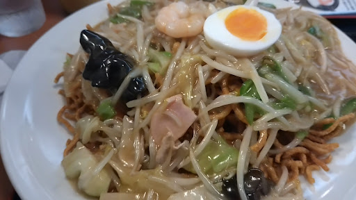 Read more長野市のエムウェーブの程近くにある幸来亭。 エムウェーブに行く予定があり、近くの店を探しいて発見。 たしか以前は横浜亭という店だったはず。 店内はカウンター席、テーブル席、小上がりに奥にはお座敷もあり、かなりの人数を収容出来そう。 私は人気メニューというあんかけ焼きそば、家内はチャーハンをオーダー。 焼きそばは、柔らか蒸し麺で部分的におこげになっていて良い食感。 醤油ベースのあんも麺にマッチした味つけで美味しい。 これに辛子酢をたっぷりかけて食すのが信州焼きそばの定番。 具材の種類は豊富で、ゆで玉子、海老、イカ、ハム、豚バラ肉に各種野菜。 個人的に残念だったのは麺の量と具材&あんかけの量のバランス。 たしかに麺は普通盛りで十二分だが、それに見合う具材とあんかけの量になれば最高。 家内のチャーハンを一口盗み食いしたが、美味しかった。次回は焼きそば&チ...