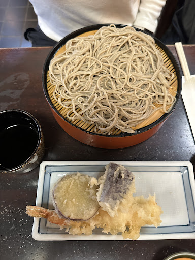 Noodles are hand made on site and plenty of seats. Located right in front of the main gate to Zenkoji. The English menus seems to be smaller than the Japanese one (saw someone else having an Oyakodon, which was not on the menu.) Great chewy noodles and best tempura shrimp I've had in awhile. Would recommend this. Cash only. Portions are not huge, so there's space to eat all the snacks you will see along the way,...