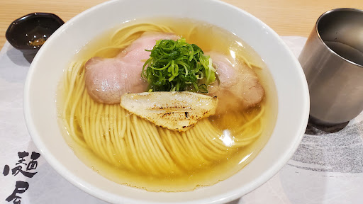 Read more日曜日のお昼に、外に5人ぐら並んでいたので、先頭の人の横の看板を見たらラーメン屋だったので並ぶ事にした。 旧千円札しか使えないとの事だったので事前に店員さんに両替をお願いする。 並んで居る間ずっ〜と店内からの換気扇の排出口から、並んでいる我々の目の前に大量の水蒸気が出て来るので、服に水滴や臭いが付くのが凄く嫌だった。(隣のお店からクレーム来ないのだろうか?営業時間を見たらこの店が14時まで隣は夕方からとなっていた…なるほど) 20分程待ってやっと入れた。 店内は狭く内部は一方通行らしい(入口と出口は別)。 入口のすぐ横にある券売機で食券を買う。1番安いラーメンで1200円!!高いラーメンでは2千円近いモノも有る。ラーメン業界で言う千円の壁を堂々と越えて来る大胆な値段設定。(この値段に設定したからお昼営業だけで成り立つんだぁ〜と感じる。あと水蒸気問題。) 席に移動して食券を渡して待つ、席に着いてからは料理はけっこう早めに出てきた。 お願いした料理は1200円の鴨中華蕎麦と替玉200円。 ごはんはかなり少なめに見え150円、日替わり丼は今日は海鮮丼600円だったのでどちらも注文しなかった。 鴨中華蕎麦は始めは醤油ベースの優しい味に感じたが、しっかりとした出汁が効いていて、なかなか美味しい!!替玉もタイミングを見て持って来てくれるので、続けて食べれて良かったが、空腹は満たされなかった…。あっさり味だったからかなぁ? 待ち時間の水蒸気と値段設定でひとつづつ☆をマイナスして、☆3にしました。料...