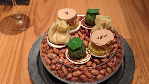 Both the wine and non alcoholic pairings enhanced the flavor experiences of the meal. The non-alcoholic pairings in particular were quite original, using fruit and spices in combination with wines with alcohol removed. One was a mocktail made using a plum from the restaurant garden. Several were made with wine heated to remove the alcohol with ingredients like vanilla, pepper, cinnamon and apple juice added.