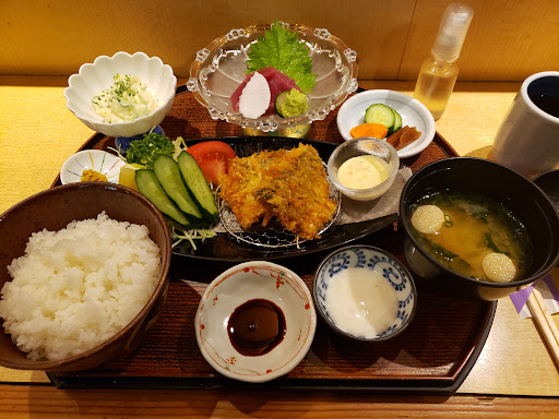 こちらのお店は何十年も前から存在は知っていましたが初めて伺いました。 平日のランチ時とあって混んでいました。 カウンター席と個室があり、案内された個室はパーテーションで3つに仕切られていました。 利用客は年配の人がほとんど。 隣の席にはスーツを着用した男性のグループがいました。 日替わりランチはなく本日のオススメ10種類ほどの中から選びました。 私はアジフライ定食1,500円を注文しました。 内容は半身のアジフライ2枚、ご飯、味噌汁、小鉢、漬物、タルタルソース アジフライは身が柔らかくて美味しかったです。 キャベツの千切りは少な目。もう少しあってもいいのでは? 小鉢は本当に小さく長方形に切った大根と薩摩揚げの煮物。しっかりした大きさの煮物が付くだけでお客様の満足度もかなりアップすると思います。 ご飯はもちもちでツヤがあり男性でも満足できる量でとても美味しかったです。 食後のサービスコー...