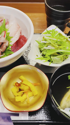 Read moreお昼限定の日替わり海鮮丼がおすすめ🍚🐟 美しい盛り付けには、大将の繊細さを感じます‼︎ 新鮮・ピチピチのネタは、すりたてワサビとの相性が抜群♡ネタの甘味もより際立ちますね‼︎ ご飯の量もまぁまぁありましたが、お魚の旨味を堪能しながらペロリと完食しました! お椀は、お魚のお出汁が上品✨ サラダは青じそドレッシング?が結構かかっていて、しょっぱかったかな。