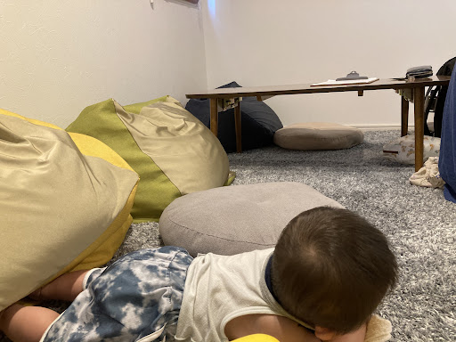 カウンター 3席と小上がりテーブル 2つに絨毯敷いてある。 小ぢんまりした小綺麗な店内だ。