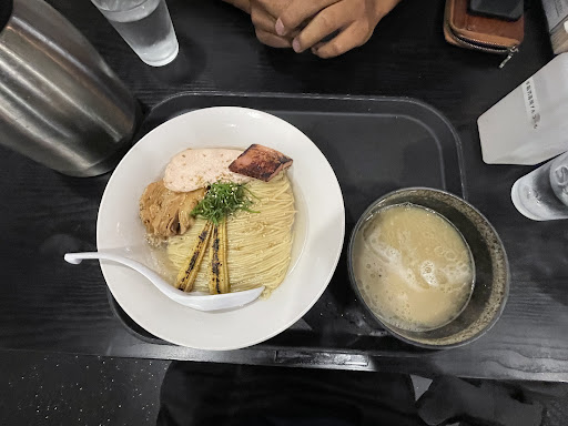 スタッフに麺増量のチケットを渡したところ、1.5玉と2玉が選べるらしく、せっかくなので2玉をお願いようとすると、食べ残しは厳禁とのことです。 2玉のグラム数をお聞きすると、大丈夫そうな量なので2玉でお願いしました。 このお店の皆さんは、丁寧な対応をしてくださいますし、気が利いていて気持ちがよいです。