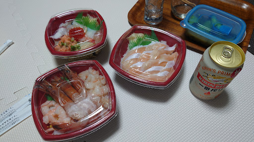 とくにまぐろは筋が多く解凍失敗して色の抜けたようなマグロ。 多分当たり外れあり。その他のネタは普通。 若干ネタも匂うが、まぁスーパーの半額寿司気にならない人なら 気にならないor気づかないと思う。 一応テイクアウトしてから15分以内に食べれる人推奨。 ご飯がぬるいのでそれ以上だとネタが多少なりとも温まりぬるくなる。 これが多分臭う原因だと思う。