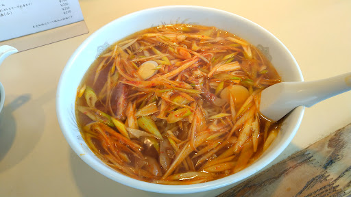 Read moreこのお店美味しいから絶対行ってみて!と知人の強いオススメと、それを証明するレビューの高評価を見て、いつか行かねばと思っていました。とある日曜日の昼に、近くに買い物に来た機会があり徒歩でお店に向かいました。開店時間前に着いたのですが、暖簾が掲げられおりこの日の一番客で入店することができました。 来たならばまず食べたいと思っていました葱絲湯麺(ねぎそば・800円)と什景炒飯(五目炒飯・750円)を注文しました。 ねぎそばは、醤油ラーメンをベースに辛味をまとった大量の白ネギと細切りのチャーシューが乗せられています。スープはあっさりで塩味も抑えられた優しい味で、初めて味わった瞬間は「あれ?インパクト薄いなぁ…?」と思ったのですが、気付けば何度も続けざまにレンゲを口に運んでいました。 炒飯は卵、ネギ、グリーンピース、ハム、チャーシューと王道で見た目も鮮やかです。一口味わいますと、驚きのパラパラ仕上がりで香ばしく、これまた優しい味付けで何度も口に運んでしまいます。今後パラパラ系炒飯が食べたいと思ったら確実に候補に挙がるでしょう。 自身、外食はこってりや塩辛いのやボリューム系ばかりを選びがちですが、今回食べた2品はどちらも優しく親しみやすい味で、この日の客層は年代が高めだったのが印象的でした。店主ご夫婦も高齢と見られますが、これからも多くの人に愛され続けて欲しいな、自身もまた行きたいなと思えるお店に...