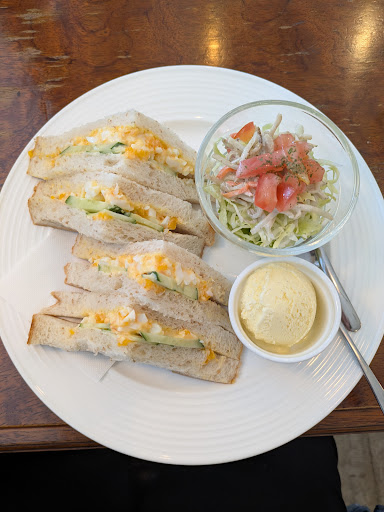Read more明るい印象の喫茶店。パンも売ってます。いろはセット¥800具材2種で+¥150とテイクアウトでナッツメロンパン¥200頂きました。 サンドイッチ、ホットサンド、ハニートーストなど5種類から選べ具材も選択できるものも。写真はサンドイッチのツナと玉子。 お値段はお手頃ですがサラダ、デザート(フルーツ)が少ないのは残念でした。メニューも少な目。 ただコーヒーの砂糖やミルクを自由に使えたり、wifi使えるのでスマホいじり...
