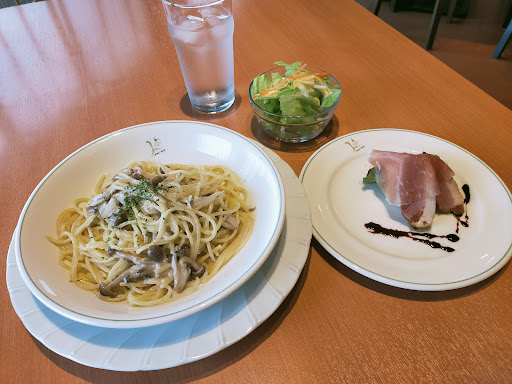 Read more初めて行きました。パスタのランチコース?1600円を頂きました。前菜に生ハムと鴨肉のバルサミコ酢のサラダ系、次ぎにサウザンドレッシングのサラダ、、パスタはアルデンテで私好み味も良かったです。あと、バニラアイスにストロベリーソースがかかったのとチョコバナナのケーキ?とアイスコーヒーこの値段で内容なら納得です。食事の星が足りないのは相方がホットコーヒーは美味しくなくカップが少し汚れてたのできちんと漂白剤でキレイにした方がいいと言った為。しかしながら料理までの提供時間はかからずウエイターさん?のおじ様は甲斐甲斐しく席を周り絶妙なタイミングで空いた皿を下げ料理を運んでくれるので素晴らしかったです。また行き...