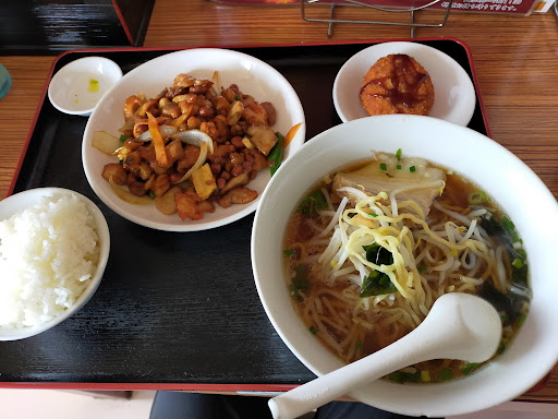 日替わりランチ(鶏肉とピーナッツ炒め)¥800、豚肉とキクラゲ炒め 定食?¥1080?頂きました。 値段に対しての量が多く、コスパで見れば間違いなく★5です。量が多く食べれない時は、ラーメン→玉子スープに変更できるので安心?それでも結構ありますが…… また、ライス1回おかわり無料(私は無理でした)とボリューム面は文句なし!ついてきたフライドチキンも骨なしで良かった。 しかし残念なところ2つほど。 1つはクオリティが低い。私は普段そんなことは気にしないけど、流石にラーメンが解れていなくて、固まったままなのは……、あと豚肉とキクラゲ炒めが9割キクラゲなのもちょい残念でした。 もう1つはメニューが不明瞭。日替わりランチメニューが入口、店内のメニュー表に分かれていて、更にランチではない普通のメニューもあるので注意! 私が頼んだ豚肉とキクラゲ炒めは、この日はランチメニューに入っていたのですが、会計したら普通のメニューのほう頼んだ?ことになってました。(内容が違うかは不明) 同名メニューで値段違うのはややこしいで、頼む時は気をつけて下さい。 メニューの不備は大きなマイナスですが、それでも★3安くてお腹いっぱい食べれ...