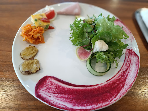 ランチメニューで、前菜とサラダのプレートと自家製パスタをいただきました。 初めて伺いましたので、前菜の説明を添えていただきたかったです。どうぞ~どん!(次の業務へ)で提供だったので、サービスの評価でマイナスにさせていただきました。感染対策で喋ることを最小限になさっているのであればこちらの理解不足です。すみません。 前菜は何かさっぱりかわかりませんでしたがどれも美味しかったです。お皿にあるベリー系のソースはサラダにつけましたが、それであっていたのかしら…。