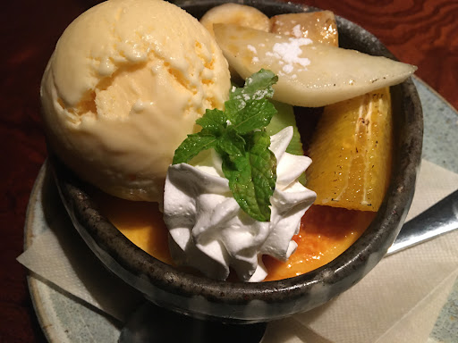 土曜の夜に4000円飲み放題コースで予約しました。家族連れが多く賑わってました。 少ない人数で回してるのか、店員さんは大忙しでしたが皆さん感じが良さそうな人ばかりでした。 デザートで、フルーツとアイスのブリュレを追加。安定の美味しさでした。