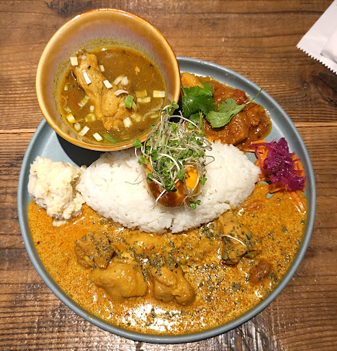 スパイスカレーが旨いということで来店しました。 味は普通でした。もう少し辛さがほしいです。 3種あいがけは嬉しいですね。薬膳スープカレーが個性的な味で好みです。