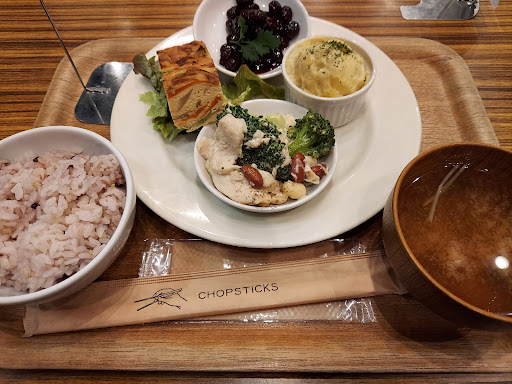 Amazing veggie friendly food with lots of variety. Tried the choose three lunch special, but it also comes in try 4 or try 5 options for people who come to eat. My partner and I both tried the Spanish omelette, but it wasn’t our favorite. Something about cold eggs always sets me off as an American, but the flavor profile was on point, creamy eggs with a healthy helping of mushrooms which gave it a satisfying texture. Also tried Suzu Deli’s take on caponata. It was perfectly prepared potatoes, eggplants, bell peppers, and onions marinated in miso and a hearty tomato glaze. The interplay of the two sauces created a symphony of taste. Loved it! The final piece was a red cabbage and carrot rappe which had a hint of vinegar in it but was balanced on the lighter side of flavoring. I highly recommend trying it if you visit. My partner tried the tempura wheat gluten wheel, called ‘fu’ in Japan, and the juxtaposition of a food that’s usually stewed being batter fried raised her eyebrows in a good way. It usually comes with a Demi-glace sauce, but we opted for a lighter take, and the crispy crunch was very satisfying. The pick three menu comes with a rich red miso soup with Enoki mushrooms and daikon. I just wish there was more substance to the soup, but it was still delicious. Diners also have the option of bread or millet-infused rice, and we opted for the rice, and it rounded out the meal nicely. There are so many potential combinations with lunches and dinners, you could eat hear 20 times and not try them all. The dining area is open with a variety of seating, and the staff was kind...