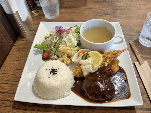 くいの巣ランチというのは定番で人気が高いお料理「自家製ハンバーグ・エビフライ・クリームコロッケ・サラダ・ライス・スープ」がワンプレートになったセットです。