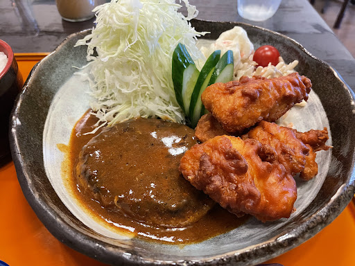 Read more町の定食屋 穂積のボリュームたっぷり唐揚げとハンバーグ。阪急長岡天神駅前にあるお店です。コロナ禍では臨時休業されている事が多く、3度目、4度目でやっと訪問する事ができました。今回は牛肉100%のデミグラスハンバーグと醤油唐揚げのセット 1,350円を注文。セットにはたっぷりのキャベツ、クリーミーなポテサラ、ゴボウサラダ、冷奴、ライス、味噌汁までついてボリュームたっぷりです。お店は感染症対策をしっかりしながら営業されていました。もう少し解放的にするともっと...