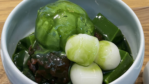 一番摘み抹茶のゼリー アイスもゼリーも濃くて美味しい、抹茶蜜をかければさらに抹茶度アップで大満足です。