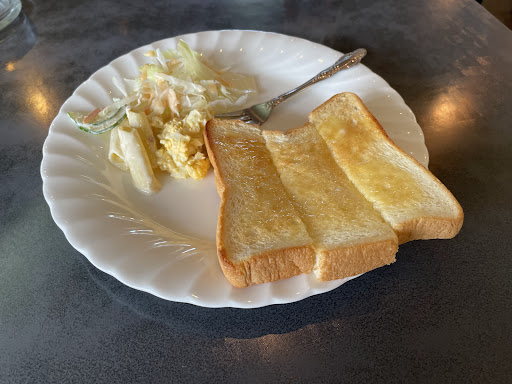 今日はホットコーヒーとスペシャルモーニングとやらを注文、すぐに作ってくれました プレートにはバタートーストをはじめベーコン焼き、ハムとスクランブルエッグとマカロニ入りのサラダが乗っていてボリュームたっぷり😃ホットコーヒーと一緒に美味しく頂きました。