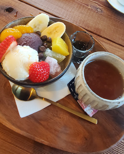 Read more本日、祖母と母と一緒に初めて伺いました。 あんみつと苺のロールケーキ、カフェオレをいただきました。 スイーツは甘さがひかえめで、私の好みの味でおいしかったです。 オーナーさんらしき方が「寒くないですか?」「砂糖はもう大丈夫ですか?」など都度気を配ってくださり、祖母にも「おいしかったですか?」と話しかけてくださったりして、その心遣いに感動しました。 店内も暖炉の暖かさが心地よく、とても居心地が良かったです。 お会計の後もスタッフの皆さん全員で挨拶してくださり、全体的な心遣いに心が温かくなりました。 ぜひまたお伺いした...