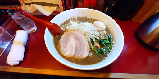 Read moreにんにく背脂ラーメンを注文しました。 スープは癖がなく美味しい、背脂の匂いが程よい感じです。 麺は中太?結構色の強い麺でしたがスープによく絡んで硬くもなく柔らかくもなく丁度いい塩梅。 チャーシューはホロホロ系でしっかり柔らかく美味しい、配膳時点では冷たいのでスープでしっかり温めてあげましょう。 値段は至って普通ですが、かなりボリュームがあるので総合的な満足度は高いと思います。野菜も多めなのが罪悪感相殺...
