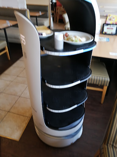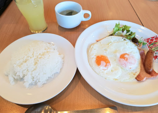 テーブルからPayPayで決済できます。昼は賑わってますが夜は静かで良き🌃ディナーや夜食のデザートで利用しています‼️駐車場は広く、出入口が2箇所あります! 全店に言える事ですがハンバーグが昔より味もサイズも上がったと思います😋パフェを買う時にソフトクリーム🍦をホイップクリーム🧁に変更できる機能が好き過ぎて毎回使ってます👍