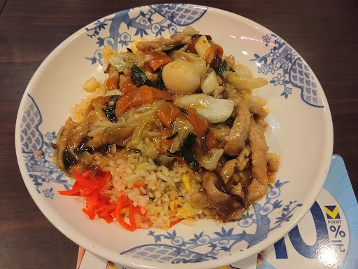 Read more【訪問店舗】バーミヤン 流山加店 【訪問月時】24年12月(火)12:05 【待ち人数/時間】なし 【入店時刻】12:05 【混雑度合】混雑ぎみ 【お店の雰囲気】落ち着いた雰囲気 【着席時刻】12:06 【席数】多数(88席) 【スタッフ人数】厨房不明人、ホール2人 【注文方法】席のタブレットで注文する方式 【注文時刻】12:07 【接客】普通 【注文した料理名】中華満腹定食(チンジャオロース定食・肉2倍)¥1318 【メイン料理到着時刻】12:19 【注文~メイン到着時間】12分 【料理の内容】チンジャオロースの肉2倍、ごはん(お代わり無料)、スープ(お代わり無料)、ザーサイ 【料理の味】チンジャオロースの肉の量2倍との触れ込みだがとても2倍には見えない(メニューには通常サイズの写真があるがそれの倍を期待したが良く見て1.7倍位にしか見えない)また、肉だけでなく元々のピーマンの量も少なく、肉を多くしたためなおピーマンの量が少なく感じた。また、食べ終えたお皿の上には、油が大量に残っていたのが残念だ。 【支払い方法】PayPay(テーブル決済) or クレジットカード or...