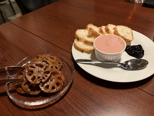 Read more流山おおたかの森駅から徒歩3分のビル3階にある、おしゃれなワインバル。ランチにガレットをいただきました。選べるセットは前菜・デザート・ドリンクが付いたフルコースでちょっと贅沢に。 5種類の前菜は全てこだわりの自家製で、バラエティに富んでいます。ゴボウのバルサミコ煮は爽やかな風味から最後はゴボウの味がしっかり。厚くスライスされたパテドカンパーニュも、これまた絶品。どれもワインのおともにピッタリ。こちらのお店にはソムリエがいらっしゃるから、ワインのセレクトもばっちりなんですよ。