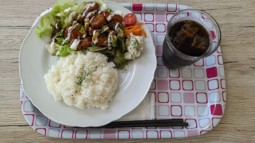 Read more生涯学習センターの中にあるカフェ。誰でも利用できるとのことだったので土曜日の昼にふたりで行ってみた。ランチセットは1,100円と公共施設ということを考えると少しお高めか?てりやきチキンのセットを注文したが、味は少し濃いめの安心感のある味で美味しかった。店内の雰囲気は手作り感があり可愛い感じ。デザート系もケーキやあんみつなどがあり、美味しそうだった...