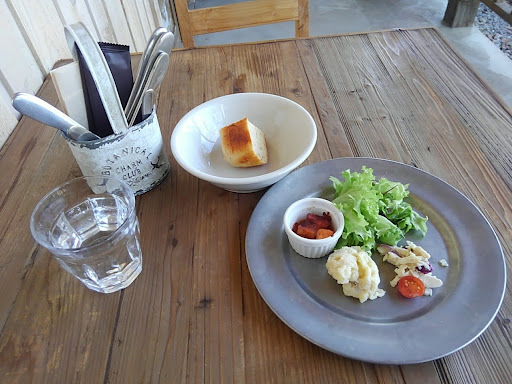 Read more交差点横にお洒落な造りのカントリー調の雰囲気のある建物がありとても気になっていたところ、人気のお店と知り訪ねてみました。 駐車場の入口は一方通行で少し分かりづらく迷ってしまいましたが無事たどり着くことができました。雰囲気のある建物の数々。そのひとつがレストランになっていました。 平日のランチはコースのみでパスタかピザ、リゾットのついたコースと、お肉かお魚をチョイス出来るコース、パスタかピザ、リゾットのハーフにお肉かお魚をチョイスできるコースの3種類があります。入り口でスタッフの方がコース料理のみになる旨を案内してくださりランチにしては少しお高めかと思いましたが中に案内していただきました。コースには小さなスープとパン(フォカッチャ)、前菜、メイン、デザート、ドリンクが付いています。お肉やお魚料理も美味しそうでしたが初めて来店するお店ということもありいちばん安い2090円のコースをお願いしました。メインはパスタとピザにし取り分けていただくことに決定。 最初にでてきたスープは一口でしたがとても優しい味でお腹が温かくなりました。続くは前菜。それぞれに個性があり食材の味が際だっているにも関わらずまとまっています。そしてメインのピザには驚かされました。生地の弾力や具材のバランス、そして沢山具がのっているのにとても食べやすく凄く美味しくてびっくりしてしまいました。ピザだけでも2000円の価値のある味でした。もちろんパスタも美味しくフォカッチャは無料でおかわりもできます。デザートもとても美味しかったです。ドリンクはおかわりはおかわり料金の追加で可能なのでデザートとコーヒーを最後までゆっくり堪能してしまいました。 結婚式まで出来る場所のようで案内のカードも置いてあります。きっと個性的で素敵な結婚式が挙げられるのではないかと羨ましく思ってしまいました。内装もムードがありとても素敵です。 ケーキは持ち帰りもできます。 近くに寄った際には是非...