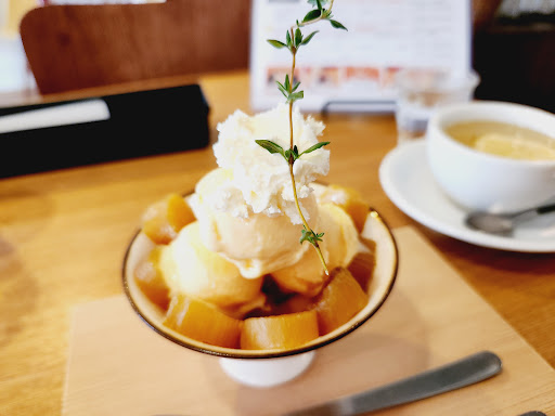 カフェプレートのレアチーズケーキが美味しく、もっとスイーツが食べたくなってしまって、食後に丸干し芋のバニラアイス添えを追加注文しました(笑) 数量限定スイーツでお店の年間スイーツセールス1位と書かれていたら注文せずにはいられませんでした。 自家製バニラアイスも干し芋も美味しかったですが、個人的には別々に食べた方が美味しくないかな❔と思ってしまいました💦 また干し芋は万人受けするものではないので年間スイーツセールス1位というのがちょっと疑問...(笑)
