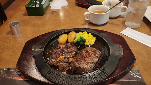 今回、フライングガーデンに訪れたのは2度目になります。前回は2、3年前にきました。 期間は空いてますが 好みなどもあると思いますが 個人的には、他の有名チェーンのびっくりドンキー、ステーキのどんよりハンバーグはおいしいお店だと思ってます。