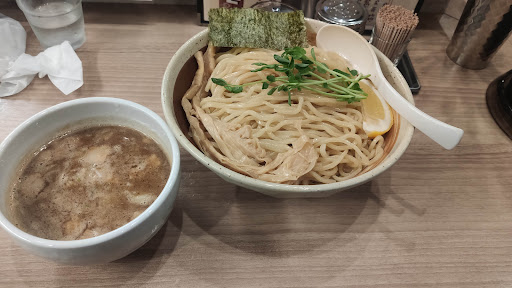 ほぼ1年ぶりに伺いました。 用事が早く終わったので、開店前に到着して待っていましたが、10:55には早開けでした。 直ぐに券売機で『濃厚味噌󠄀ラーメン』『煮干しつけ麺』を特盛りで注文。 この時点で凄く嬉しかったのが、「どちらを先にお出ししますか?」と聞いて頂きました。 他のお店で2品頼むと、一緒に出されるお店が多いんですよ。 ホスピタリティの勉強にもなりますね。 先に味噌󠄀を頂きましたが、スープは確かに濃厚なのに飲みやすい印象です。 初めての味噌󠄀なのでデフォでしたが、次回は背脂を増したいと思います。 麺を食べ終わってスープを啜っていると、つけ麺の到着です。 驚くほどベストタイミングです! つけ汁煮干しはニボニボし過ぎて無くて、良い塩梅の煮干し加減です。 ガチの煮干しはちょっと苦手なので、自分には凄く丁度良いです。 チャーシューは薄切りですが、版が大きいので食べ応えがあります。 しっとりしてるので、スープで温まる前に食べたほうが良いです。 大満足でしたが、来月も近くに用事があるので、未食メニューを攻めたいと思います。 他の方のコメントにもありますが、店主の仕事が凄く丁寧です。 カウンター越しに丸見えですが、食材も大切に扱って調理器具も厨房内もメチャクチャ綺麗です。 美味ければ良いかも知れませんが、こういうお店はお客とし...