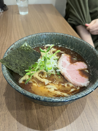 Read more魚介豚骨と濃厚味噌が二枚看板なのかな。どちらも塩気が控えめでやや甘さを感じるようなマイルドな味、パンチは無い。魚介の方は気に入ったけど味噌の方は物足りない気がした。 頻繁に期間限定で様々な創作系ラーメンを提供するようで、通常メニューも含めて外れは無い感じ。 昼帯は大盛りが無料サービスだが、店主からの声がけはあったり無かったりと安定しないので、希望するなら食券を渡す際に自分から言うべし。 店内は極めて狭く、カウンター5席に2人掛けのテーブル、というかデスクが1つ置いてあるだけで、店主のワンオペであるため、多人数で行くのは控えるべき。