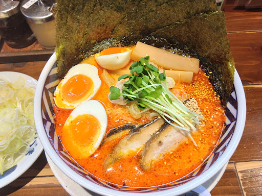 行ったことのないラーメン店巡りの第13弾として、2025年5月2日、ゴールデンウィークの真っ只中のお昼時に「麺屋あじくま 初石店」殿を訪問しました。 正確に申し上げますと、本店舗には過去にも5回程リピート訪問したことがあるのですが、その当時はメニューの味や写真を詳細にご紹介する、ローカルガイドおよびラーメン食レポとしての投稿を全くしておりませんでしたので、改めてここで投稿文と最新の写真追加で以て、本店舗のご紹介とさせてください。 「あじくま」殿は、ラーメンの味系統が大変豊富で、「中華そば 白」「中華そば 黒」「赤ラーメン」「味噌ラーメン」「つけ麺」に大別されます。そして、各々5系統の味について、価格順に、エントリーメニューからハイエンドメニューまで細かくラインナップがされております。だから、色々なメニューがあって、とても楽しくメニュー表を見させていただきました。 第6回目の訪問では、「赤ラーメン」のハイエンドメニューである「赤スペシャル盛り(ねぎ大盛り付き)」を注文し、追加トッピングとして「とろとろ半熟玉子(味玉🐣)」「メンマ大盛り」「のり大盛り」を追加しました。 ラーメンのお供として「チャーシュー丼(ネギチャ丼)」も注文しました。 赤スペシャル盛りラーメンは、花椒の効いた自家製のラー油とたっぷりな胡麻の美味しさとを調和させ、魚介出汁と豚骨出汁によるコクとカエシのバランスを絶妙に効かせた、胡麻辛味(担々麺風に近い)で、かつ、ハイエンドメニューとしても、ありとあらゆる具材が注ぎ込まれた「全部乗せ赤ラーメン」です。 麺の太さは「細麺」を選択しましたが、細麺であるのに大変コシがあって鍛え上げられた麺でした。また、麺本体と上記に記載した胡麻辛味のスープとの絡み合い方も大変抜群であり、ラーメンのお供として注文した「チャーシュー丼」と共に、短時間のうちに完食してしまいました。 私が赤スペシャル盛りラーメンとチャーシュー丼を一気に食べ進めてしまった要因としては、以下であると分析します。