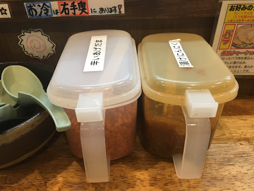 【がっつり】のほうが豚バラとかにも脂肪の部分が多いせいか試したら残しました。まぁ【こってり】も多いんだけどね。なお【こってり】は豚骨ベースか醤油ベースを選べます。