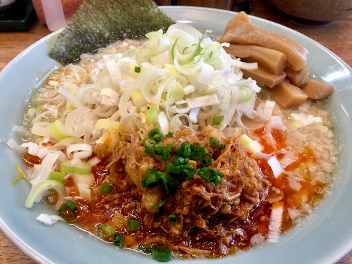 Read more2021.06.22 汁5点 味噌カツガッツリラーメン 麺9点 1070円 具7点 総合8/10点 夜、コロナの影響で持ち帰りのみだったので弁当をオーダー 【スープ】 弁当なのでもやしが別皿となり、最初にすべてのもやしをのせるのは困難なため、スープが濃くなり一口目はかなり塩分が強かった。その後もやしを少しずついれてだんだんちょうどよくなる感じ。スープは正直めんつゆに近いという印象。動物のコクはあまり感じられない。和風だしと甘さと塩分がつよく感じられる。これもニンニク入れちゃえばまぁ二郎ってノリになるけど。 【麺】 こうじグループの角ふじ系列ぽいが、相変わらず麺のクオリティは安定してる。かん水と麦の香りが感じられ、なによりしっかりしたコシがたまらない食べごたえを作り出している。このラーメン、麺がすべてってレベル。 【具】 チャーシューのかわりに味噌カツが入っている仕様。意外と味噌カツがしっかり赤味噌を使った本場名古屋の味噌ダレをつかってるにはビビった。そのまま食べるとただの味噌カツで、ラーメンとの相性は首をかしげるところではあったが、なにげに濃い状態のスープにつけて食べたり、何よりニンニクと一緒に食べるとまた新しい旨さがあった。これはこれでたまーーーーに食べたくなるかもwもやしは野菜多めオーダーで、丼で見てないので量は分かりづらかったが、かなりのカチ盛りになってた。食後しばらく苦しくて動きたくなくなり二郎スロウがかかる。 【ライス】150円 まぁまぁ多い。 【大勝軒つけ麺】880円 印象としては少しだけシャバシャバしてる富田って感じ。まぁ文句なしに旨い。チャーシューはバラを選択、少し火を通しすぎてる印象、軽いぱさつき。麺とスープがハイクオリティなだけにちっと残念。 【総評】 角ふじやらトミタっぽいのやら色々食べれる嬉しいおみせ。普段は深夜2時までやってるのも好ポイント。なぞの辛い揚げ玉などトッピングも面白そうなので次回はぜひ店内で食べたい。そしてまぜそばかこ...