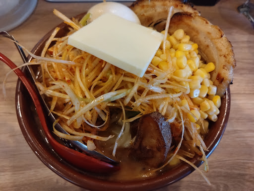 Read more今日は寒いから帰りしなに味噌ラーメンでも食べて暖かくなってから帰ろうと思って唯一空いてし出来てから1度も行った事ないから行ってみるか?とin😄 とりあえず入ったら店員のお兄ちゃんマスクしてるから全く聞こえません!2、3度聞いてあーハイハイ😮💨w 席着いてお水持ってきたタイミングで決まりましたか?て10秒位だし初めてだから判らないよね。 で、判らなすぎるんでお店のオススメってなぁに?と聞いたら味噌漬け炙りチャーシュー麺です!うちはチャーシューがイチオシなので!と言われ、う〜ん味噌ラーメンがイチオシちゃうんか〜い!?と思いながらじゃそれで❗️と注文味濃そうなんで中ライス頼んで、割と早く到着しました🍜 実食!、、、チャーシュー硬いしバサバサですけど??これがイチオシなのかぁ、、とまぁサッっと食べて1600円払って出ました。 まぁ空いてた訳だよね〜自分が入ってから満席にはなったけど、1度食べたらもういいかな?とはなりました。 不味くはないですよ!でもまオペレーションやら味噌ラーメン専門店なのにチャーシューがイチオシで食べたら硬かったりとなんですかね、店内も雑然としていてそーゆー所が見てとれると、、ちゃんとしよっか!?って思うお店かなぁ〜あとちと土地柄にしては高価で他行っても1500円上回る事そうそう無いけどなとも思いました。 その分店内綺麗でオペレーションやらホスピタリティが充実してたらまぁいいかねーとはなるけど、テーブルの端っこの木の部分はささくれちゃってて服引っかかってんだろうね、服の糸がボソボソあったりとかお金掛けなくても盛り上げよう!って気持ちがあれば色々賑やかにポップがあったりしたら多少はね〜何も無いから仮設感...