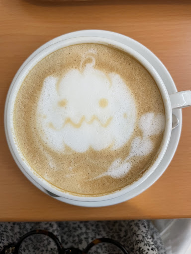 甘さ控えめでクリームも軽いので、甘いのやドッカリしたものが苦手な人でも とても食べやすいですよ😊 カフェラテのアートもめちゃ可愛く、おかわりは100円ですって!