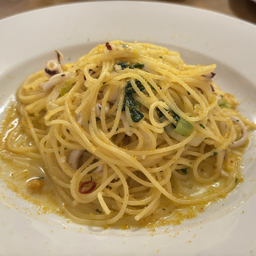 エビの濃厚パスタは、エビの風味とキノコのの旨味がしっかりしていて濃厚なソースに絡むアルデンテの細麺パスタはとても美味しかったです♡ 味付けが少し濃いなと思ってしまうほど、しっかりとした味付けでした。ワインなどお酒にちょうどいいかも?
